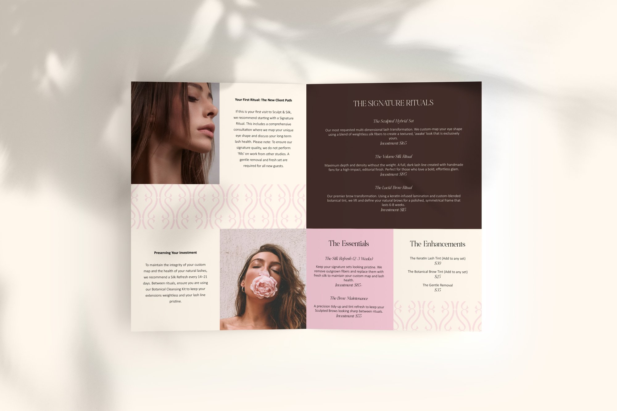 Here’s what luxury beauty brand identity design typically includes in menus: